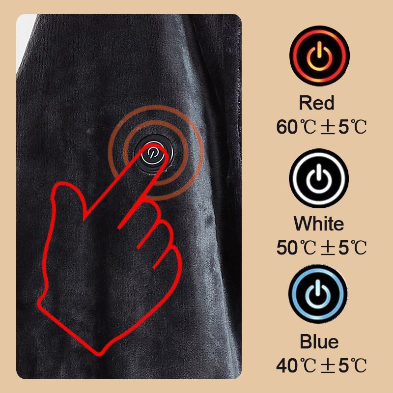The heating blanket has 3-gear temperature settings (45-65℃/ 95-140°F), which you can easily adjust. The rapid heating function can help you withstand the cold weather and get a comfortable feeling in a short time.