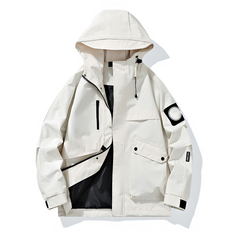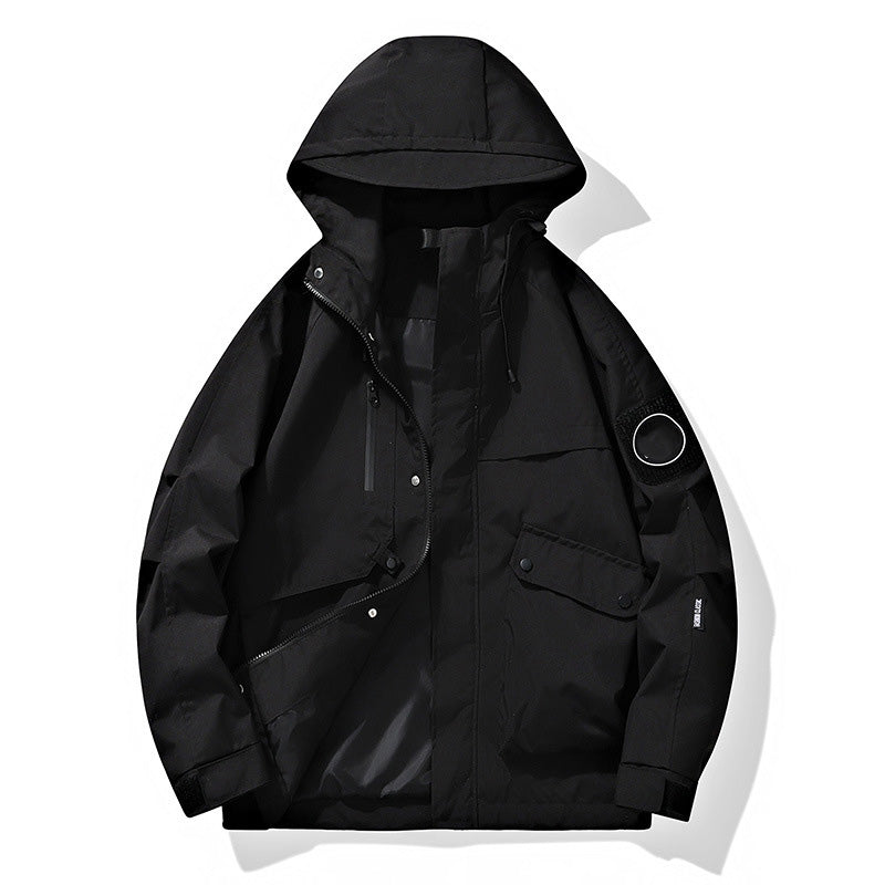 FUNCTIONAL STORAGE – The jacket incorporates a chest pocket with a waterproof taped seam, providing secure protection for items such as phones, keys, or maps. Large-capacity dual pockets are also designed for convenient side or flap access. These functional compartments combine practicality with safety, ensuring essentials remain dry and accessible during outdoor activities or travel.
