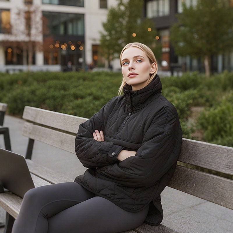 STYLISH QUILTED DESIGN: Featuring a chic quilted pattern, this hoodie combines function with fashion. Its modern design adds a stylish touch to your casual or outdoor outfits.